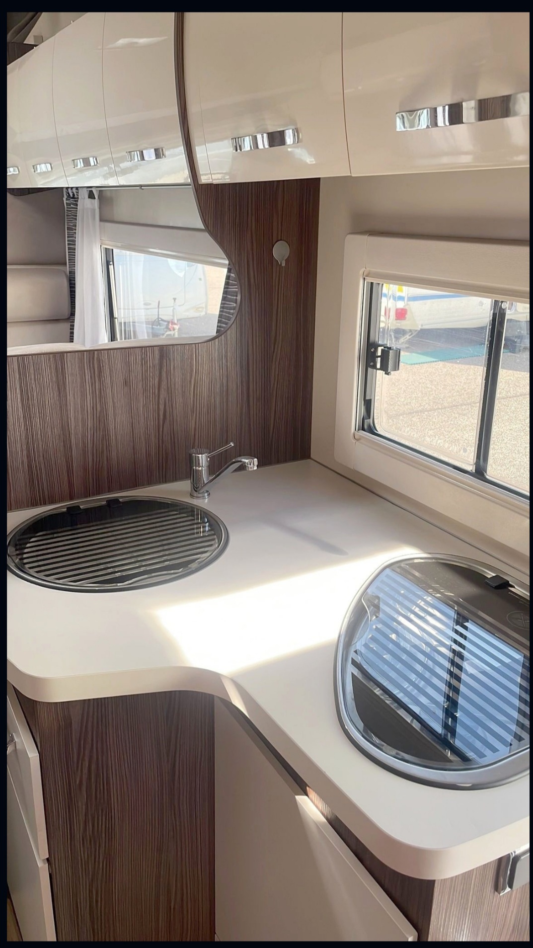 Con un motor Fiat 2.3 de 150 cv Euro6 y aire acondicionado, te garantizamos un viaje cómodo y seguro en cualquier destino. Sus medidas totales de 6.91×2.30×3.08 proporcionan un amplio espacio interior para relajarte y disfrutar del camino.